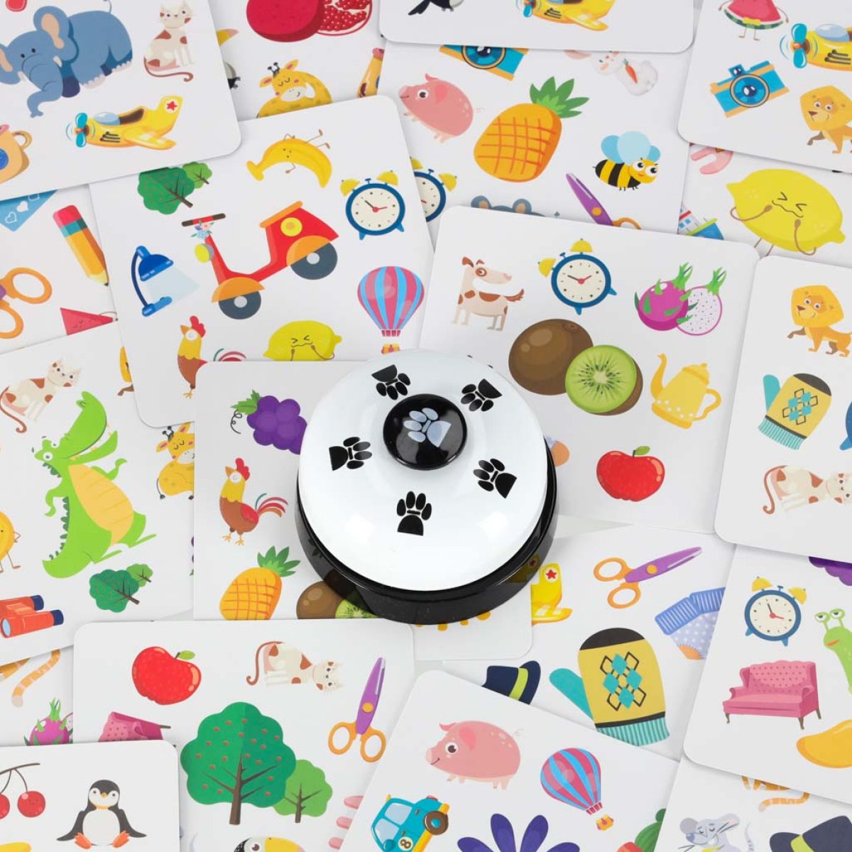 Hra obsahuje 54 pevných obrázkových kariet s farebnými motívmi - zvieratká, ovocie, hračky, predmety a ďalšie. Vďaka jasným farbám a veselým ilustráciám je hra skvele prehľadná a zábavná aj pre menšie deti. Zvonček dodáva hre dynamiku a robí z nej ideálnu voľbu na rodinné večery, oslavy, výlety alebo hranie s kamarátmi.