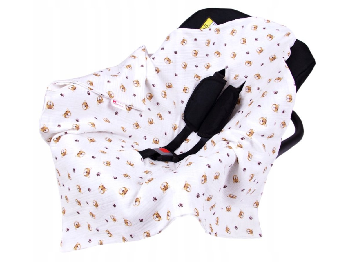 Prikrývka s kapucňou do autosedačky - minky Veľkosť 100x100 cm Deka - zavinovačka udržia vaše batoľa v teple pri cestovaní. Je určený predovšetkým na použitie v detskom nosiči alebo autosedačke. Kapucňa umožňuje zahriať hlavičku dieťaťa. Deka má strihy pre trojbodové bezpečnostné pásy. Hodí sa pre väčšinu nosidiel. Môže byť tiež použitý ako bežná deka. Veľkosť 100 x 100 vám umožňuje používať ho, aj keď je dieťaťu dva alebo tri roky. Jedna strana deky je vyrobená z najkvalitnejšej 100% bavlny v atraktívnych vzoroch, druhá strana je vyrobená z materiálu vaflík. Údržba: Prať pri 30 stupňoch Žmýkanie pri najnižšej rýchlosti Žehliť na strane Minky Nepoužívať do sušičky