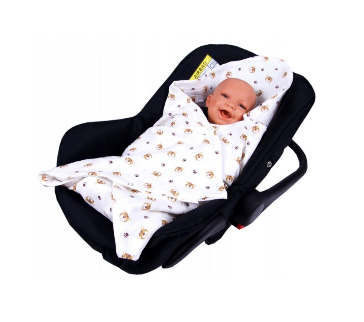 Zavinovacia deka pre bábätká do autosedačky – obojstranná, vyrobená z vysoko kvalitnej bavlny a jemného minky, ktorá poskytuje maximálny komfort a bezpečie počas cestovania. Táto štýlová a praktická deka je navrhnutá pre ľahké a rýchle zavinutie, čo uľahčuje manipuláciu s bábätkom v autosedačke. Univerzálny dizajn umožňuje použitie nielen v autosedačke, ale aj v kočíku alebo doma. Jednoduchá údržba a príjemné materiály zaisťujú dlhú životnosť a pohodlie. Perfektná voľba pre moderných rodičov, ktorí hľadajú funkčné a elegantné riešenie pre svojich najmenších. Deka - zavinovačka udržia vaše batoľa v teple pri cestovaní. Je určený predovšetkým na použitie v detskom nosiči alebo autosedačke. Kapucňa umožňuje zahriať hlavičku dieťaťa. Deka má strihy pre trojbodové bezpečnostné pásy. Hodí sa pre väčšinu nosidiel. Môže byť tiež použitý ako bežná deka. Veľkosť 90 x 90 cm vám umožňuje používať ho, aj keď je dieťaťu dva alebo tri roky. Jedna strana deky je vyrobená z najkvalitnejšej 100% bavlny v atraktívnych vzoroch, druhá strana je vyrobená z materiálu vaflík. Rozmer: 90x90 cm Údržba: Prať pri 30 stupňoch Žmýkanie pri najnižšej rýchlosti Žehliť na strane Minky Nepoužívať do sušičky