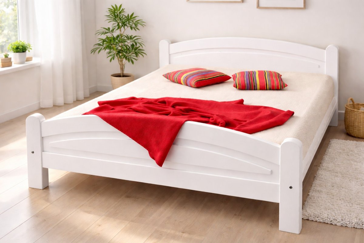Zvýšená posteľ z masívu borovice je moderná posteľ, ktorá je vyrábaná z kvalitného a prírodného dreva borovice. Posteľ je povrchovo upravená kvalitným ekologickým vodou riediteľným lakom, ktorý je zdravotne nezávadný. Tento lak chráni drevo pred vlhkosťou a mechanickým poškodením. Posteľ poskytuje zvýšenú polohu ľahu vo výške cca 34 cm, čo je vhodné nielen pre seniorov, ale aj pre osoby s problémami pohybového aparátu. Naša posteľ z masívu borovice je ideálnou voľbou pre tých, ktorí hľadajú kombináciu pevnosti, funkčnosti a estetického vzhľadu. Vyberte si svoj variant ešte dnes! Súčasťou postele je aj latový rošt, ktorý zaisťuje optimálnu podporu a komfort počas spánku. Táto pevná a stabilná posteľ je vyrobená z masívneho dreva borovice o hrúbke 25 - 28 mm, čo zaručuje jej stabilitu a dlhú životnosť Posteľ je opatrená dvoma vrstvami bezfarebného ekologického a zdravotne nezávadného laku, ktorý zvyšuje odolnosť proti opotrebovaniu a zároveň zdôrazňuje prirodzenú krásu dreva. K dispozícii sú aj farebné varianty v odtieňoch jelše, duba a orecha. Tieto varianty sú najskôr morené vo vyššie spomínaných odtieňoch a následne dvakrát lakované priehľadným lakom, čo im dodáva jedinečný a elegantný vzhľad. Samotná montáž postele je veľmi jednoduchá, kedy pomocou skrutiek, zaisťovacích matíc a drevárskych kolíkov postavíte dve čelá postele proti sebe a vložíte medzi ne z každej bočnej strany bočnice, na ktorých sú zároveň namontované podklady na pripevnenie roštu. Pri dvojposteľoví (120x200 až 180x200 cm) sa ešte vkladá tzv. piata stredová noha, ktorá stredom postele podopiera v polovici rošty. Súčasťou kompletu šróbenia je aj montážna kľučka. Rozmerové značenie postele zároveň určuje veľkosť otvoru pre matrac, resp. rozmer matraca. Na postele poskytujeme dvojročnú záruku. Odporúčame k tomuto produktu dokúpiť: Matrac - nakupujte - TU Plachty - nakupujte - TU Úložný priestor - nakupujte - TU Nočné stolíky, komody atď. - nakupujte - TU Prikrývky, vankúše, chrániče, toppery - nakupujte - TU Rozmery postele: Rozmery postele sú kľúčové pre pohodlie a funkčnosť spálne. Výška postele by mala byť taká, aby ste mohli ľahko vstávať a ľahať. Rozmery postele môžu ovplyvniť celkový vzhľad a funkčnosť vašej spálne. V našej ponuke nájdete aj postele zvýšené. To je obzvlášť dôležité pre staršie osoby alebo osoby s obmedzenou pohyblivosťou. Rozmery postele 80x200 cm a 90x200 cm sú všeobecne považované za štandardné pre jednolôžko. Tieto rozmery postele sú ideálne pre jednotlivcov a nájdu uplatnenie v spálni, študentskej izbe, hosťovskej izbe a ďalších izbách. Nami ponúkané postele, možno doplniť matracom, nočnými stolíkmi, komodou, skriňou aj úložným priestorom. Postele s rozmermi 120x200 cm a 140x200 cm sú považované za veľmi komfortné jednolôžka. Tento rozmer postele je ideálny pre jednotlivcov, ktorí hľadajú viac priestoru ako štandardné jednolôžko ponúka. Rozmery postele 160x200 cm a 180x200 cm sú považované za štandardné pre dvojlôžkovú posteľ. Pred nákupom postele sa uistite, že máte dostatok miesta vo svojej spálni. Materiál postele: Masív borovice je typ dreva, ktorý je známy svojou dobrou pevnosťou a dlhou trvanlivosťou. Borovicové drevo sa radí medzi mäkké dreviny. Je o málinko tvrdšia ako masívny smrek, ale lepšie sa opracováva. Borovicové drevo vyniká krásnou farbou a okúzľujúcou kresbou. Má svetlú farbu, ktorá vďaka obsahu jadra miestami prechádza až do oranžovo hnedého alebo červenkastého odtieňa. Tento materiál je často používaný v nábytkárstve, napríklad na výrobu postelí alebo knižníc. Výrobky z masívu borovice sú obľúbené pre svoj prírodný vzhľad a trvanlivosť. Typ postele: Klasická posteľ je typ postele, ktorý sa skladá z troch základných častí: rámu, roštu a matraca. Rám postele môže byť vyrobený z rôznych materiálov, vrátane dreva, kovu alebo laminátu. Do rámu sa vkladá rošt. Matrac je položený na rošt a môže byť vyrobený z rôznych materiálov, vrátane peny, latexu alebo pružín. Matrac: Veľkosť matraca by mala zodpovedať rozmerom postele. Matrac sa delí podľa materiálu výroby na matrace z PUR peny, matrace z HR peny, matrace z lenivej peny, pružinové matrace, taštičkové matrace, latexové matrace, lamelové matrace, sendvičové matrace, antibakteriálne matrace. Matrace môžu byť mäkké, stredne tvrdé (H2, H3), tvrdé alebo veľmi tvrdé (H4). Tvrdosť matraca je dôležitý faktor, ktorý ovplyvňuje pohodlie a podporu, ktorú matrac poskytuje. Pri výbere matraca je dôležité zvážiť niekoľko faktorov, vrátane vašej preferovanej polohy spánku, vašej telesnej hmotnosti a akékoľvek zdravotné problémy, ktoré môžete mať. Latkový rošt ZADARMO: Latkový rošt je ideálnou voľbou pre tých, ktorí hľadajú kvalitný, pohodlný a cenovo dostupný podklad pod matrac. Latkový rošt sa skladá z drevených líšt, ktoré sú spojené textíliou. Rošt poskytuje dobrú podporu tela, cirkuláciu vzduchu a odvádzanie vlhkosti. Rošt postele je tvorený 12 priečkami, ktoré sú spojené textíliou, priečky roštu sú z masívu borovice. Medzery medzi priečkami sú cca 11 cm. Spracovanie - lakovaná posteľ: Lakované postele sú obľúbené pre svoj elegantný vzhľad a odolnosť. Lakovaný povrch je hladký, ľahko sa čistí a je odolný voči poškriabaniu a opotrebovaniu. Je však důležité mít na paměti, že bílá barva je zvláště citlivá na nežádoucí vnější faktory, jako je sluneční záření. Dlouhodobé vystavení postele těmto podmínkám může způsobit vizuální změny v podobě zabarvení. Máte záujem o veľkoobchodnú spoluprácu? Alebo chcete získať zaujímavú cenovú po