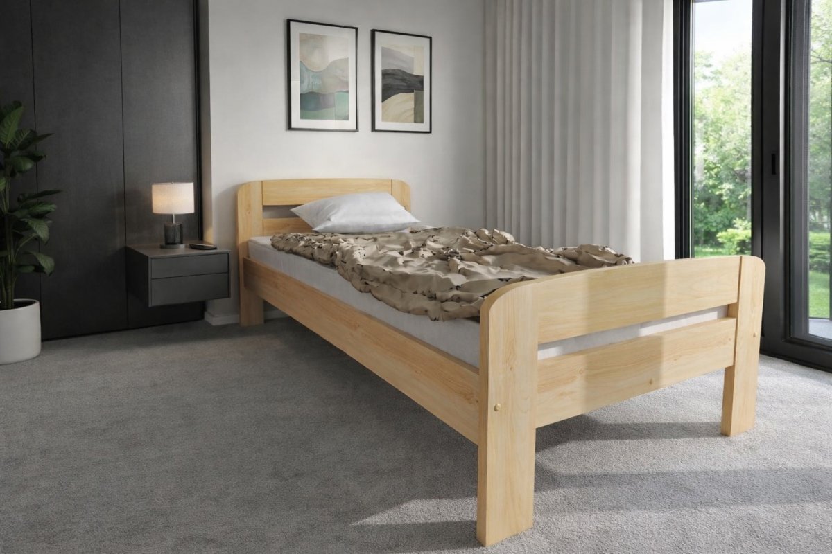 Zvýšená posteľ z masívu borovice je moderná posteľ, ktorá je vyrábaná z kvalitného a prírodného dreva borovice. Posteľ je povrchovo upravená kvalitným ekologickým vodou riediteľným lakom, ktorý je zdravotne nezávadný. Tento lak chráni drevo pred vlhkosťou a mechanickým poškodením. Posteľ poskytuje zvýšenú polohu ľahu vo výške cca 34 cm, čo je vhodné nielen pre seniorov, ale aj pre osoby s problémami pohybového aparátu. Naša posteľ z masívu borovice je ideálnou voľbou pre tých, ktorí hľadajú kombináciu pevnosti, funkčnosti a estetického vzhľadu. Vyberte si svoj variant ešte dnes! Súčasťou postele je aj latový rošt, ktorý zaisťuje optimálnu podporu a komfort počas spánku. Táto pevná a stabilná posteľ je vyrobená z masívneho dreva borovice o hrúbke 25 - 28 mm, čo zaručuje jej stabilitu a dlhú životnosť Posteľ je opatrená dvoma vrstvami bezfarebného ekologického a zdravotne nezávadného laku, ktorý zvyšuje odolnosť proti opotrebovaniu a zároveň zdôrazňuje prirodzenú krásu dreva. K dispozícii sú aj farebné varianty v odtieňoch jelše, duba a orecha. Tieto varianty sú najskôr morené vo vyššie spomínaných odtieňoch a následne dvakrát lakované priehľadným lakom, čo im dodáva jedinečný a elegantný vzhľad. Samotná montáž postele je veľmi jednoduchá, kedy pomocou skrutiek, zaisťovacích matíc a drevárskych kolíkov postavíte dve čelá postele proti sebe a vložíte medzi ne z každej bočnej strany bočnice, na ktorých sú zároveň namontované podklady na pripevnenie roštu. Pri dvojposteľoví (120x200 až 180x200 cm) sa ešte vkladá tzv. piata stredová noha, ktorá stredom postele podopiera v polovici rošty. Súčasťou kompletu šróbenia je aj montážna kľučka. Rozmerové značenie postele zároveň určuje veľkosť otvoru pre matrac, resp. rozmer matraca. Na postele poskytujeme dvojročnú záruku. Odporúčame k tomuto produktu dokúpiť: Matrac - nakupujte - TU Plachty - nakupujte - TU Úložný priestor - nakupujte - TU Nočné stolíky, komody atď. - nakupujte - TU Prikrývky, vankúše, chrániče, toppery - nakupujte - TU Rozmery postele: Rozmery postele sú kľúčové pre pohodlie a funkčnosť spálne. Výška postele by mala byť taká, aby ste mohli ľahko vstávať a ľahať. Rozmery postele môžu ovplyvniť celkový vzhľad a funkčnosť vašej spálne. V našej ponuke nájdete aj postele zvýšené. To je obzvlášť dôležité pre staršie osoby alebo osoby s obmedzenou pohyblivosťou. Rozmery postele 80x200 cm a 90x200 cm sú všeobecne považované za štandardné pre jednolôžko. Tieto rozmery postele sú ideálne pre jednotlivcov a nájdu uplatnenie v spálni, študentskej izbe, hosťovskej izbe a ďalších izbách. Nami ponúkané postele, možno doplniť matracom, nočnými stolíkmi, komodou, skriňou aj úložným priestorom. Postele s rozmermi 120x200 cm a 140x200 cm sú považované za veľmi komfortné jednolôžka. Tento rozmer postele je ideálny pre jednotlivcov, ktorí hľadajú viac priestoru ako štandardné jednolôžko ponúka. Rozmery postele 160x200 cm a 180x200 cm sú považované za štandardné pre dvojlôžkovú posteľ. Pred nákupom postele sa uistite, že máte dostatok miesta vo svojej spálni. Materiál postele: Masív borovice je typ dreva, ktorý je známy svojou dobrou pevnosťou a dlhou trvanlivosťou. Borovicové drevo sa radí medzi mäkké dreviny. Je o málinko tvrdšia ako masívny smrek, ale lepšie sa opracováva. Borovicové drevo vyniká krásnou farbou a okúzľujúcou kresbou. Má svetlú farbu, ktorá vďaka obsahu jadra miestami prechádza až do oranžovo hnedého alebo červenkastého odtieňa. Tento materiál je často používaný v nábytkárstve, napríklad na výrobu postelí alebo knižníc. Výrobky z masívu borovice sú obľúbené pre svoj prírodný vzhľad a trvanlivosť. Typ postele: Klasická posteľ je typ postele, ktorý sa skladá z troch základných častí: rámu, roštu a matraca. Rám postele môže byť vyrobený z rôznych materiálov, vrátane dreva, kovu alebo laminátu. Do rámu sa vkladá rošt. Matrac je položený na rošt a môže byť vyrobený z rôznych materiálov, vrátane peny, latexu alebo pružín. Matrac: Veľkosť matraca by mala zodpovedať rozmerom postele. Matrac sa delí podľa materiálu výroby na matrace z PUR peny, matrace z HR peny, matrace z lenivej peny, pružinové matrace, taštičkové matrace, latexové matrace, lamelové matrace, sendvičové matrace, antibakteriálne matrace. Matrace môžu byť mäkké, stredne tvrdé (H2, H3), tvrdé alebo veľmi tvrdé (H4). Tvrdosť matraca je dôležitý faktor, ktorý ovplyvňuje pohodlie a podporu, ktorú matrac poskytuje. Pri výbere matraca je dôležité zvážiť niekoľko faktorov, vrátane vašej preferovanej polohy spánku, vašej telesnej hmotnosti a akékoľvek zdravotné problémy, ktoré môžete mať. Latkový rošt ZADARMO: Latkový rošt je ideálnou voľbou pre tých, ktorí hľadajú kvalitný, pohodlný a cenovo dostupný podklad pod matrac. Latkový rošt sa skladá z drevených líšt, ktoré sú spojené textíliou. Rošt poskytuje dobrú podporu tela, cirkuláciu vzduchu a odvádzanie vlhkosti. Rošt postele je tvorený 12 priečkami, ktoré sú spojené textíliou, priečky roštu sú z masívu borovice. Medzery medzi priečkami sú cca 11 cm. Spracovanie - lakovaná posteľ: Lakované postele sú obľúbené pre svoj elegantný vzhľad a odolnosť. Lakovaný povrch je hladký, ľahko sa čistí a je odolný voči poškriabaniu a opotrebovaniu. Máte záujem o veľkoobchodnú spoluprácu? Alebo chcete získať zaujímavú cenovú ponuku na väčšie množstvo našich produktov? Obchodníkom a firmám, ponúkame možnosť nákupu na veľkoobchodné ceny. Zašlite dopyt na ondera@seznam.cz, veľmi radi sa Vám budeme venovať. Poprípade sa zaregistrujte sa ("UŽÍVATEĽ" - v hor