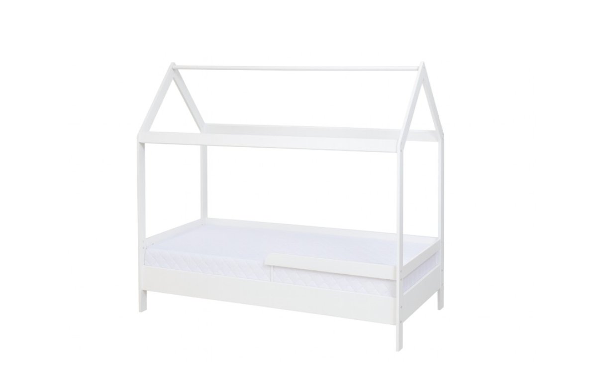 viac informáciíDetskú posteľ domček v rozmere 160/80 cm má ochranné bariéry, ktoré je možné namontovať na obe strany, prípadne úplne demontovať. Nábytok je vyrobený z borovicového dreva a trikrát lakovaný ekologickým lakom. Použité laky sú certifikované Národným hygienickým ústavom. Použité laky môžu byť na predmetoch, s ktorými budú mať deti kontakt (dodržiavanie DIN EN 71 ). Produkt je dodávaný v demonte. V "PRÍSLUŠENSTVE" (vpravo dole) máte možnosť zakúpiť rôzne typy matracov. Matrac nie je súčasťou. Balenie obsahuje: posteľ s bariérami latkový rošt spojovací materiál
