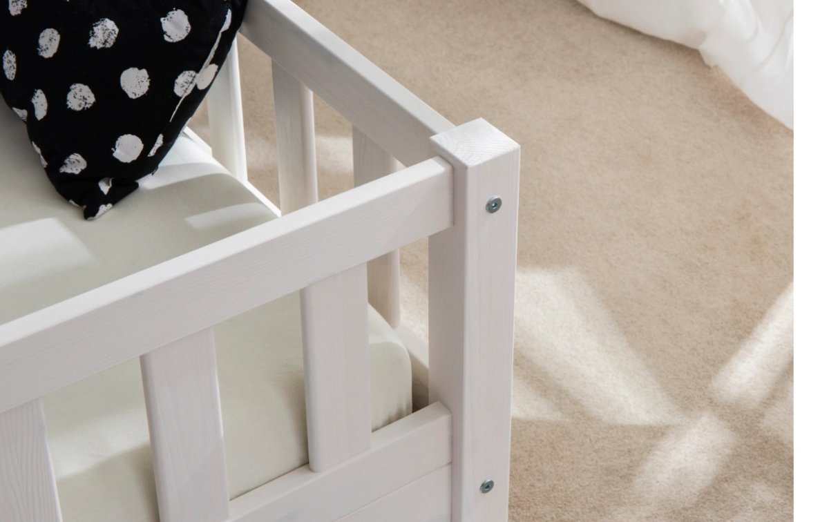 Posteľ je vyrobená z masívneho a odolného borovicového dreva a vďaka svojim zaobleným hranám ponúka maximálnu ochranu. Pre väčšiu bezpečnosť má táto posteľ obvodové ochranné bariéry a nastaviteľnú kratšiu barierku so vstupom do postele, ktorú je možné pripevniť variabilne vľavo, vpravo alebo vôbec.