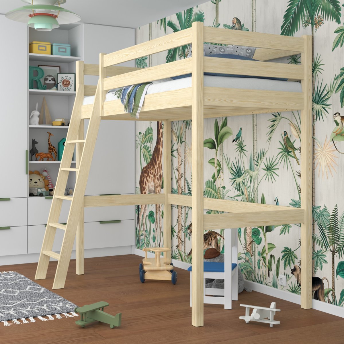 Hľadáte multifunkčné a priestorovo úsporné riešenie pre používateľov vášho teenagera? Patrová posteľ Betty jednolôžko je tou pravou voľbou. Vyrobená z kvalitnej masívnej borovice, tato postel ponúka stabilnú a pevnú konštrukciu s bezpečnostnou zábranou proti pádu. Povrchová úprava lakovaním nezávadným jazerom s dlhou životnosťou a ľahkou údržbou.