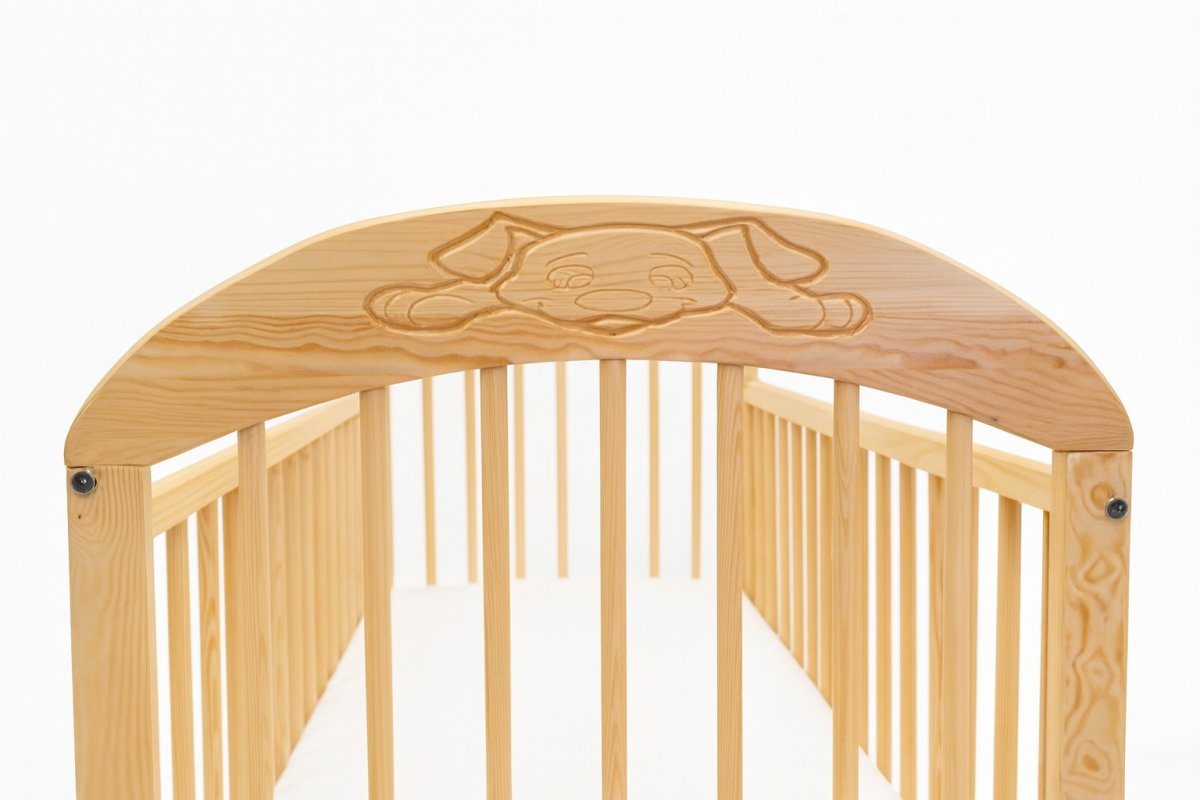 Jedinečná postieľka s gravírom, bude ozdobou dětského izbičky. Čelá sú vyrobené z MDF materiálu a bočné priečky sú vyrobené z bieleho borovicového dreva. Použité ekologické farby, ktoré sú pre deti úplne bezpečné. Detská postieľka má 3 odnímateľné priečky, ktoré možno vybrať, keď je dieťa dosť vyspelé na to, aby mohlo samo vyliezať z postieľky. Detská postieľka sa vyznačuje plochými priečkami, ktoré sú pri kontakte s bočnicou postieľky pre dieťa rozhodne menej nebezpečné. Detská postieľka má 3 stupňové výškové nastavenie matraca, poloha dna by mala byť určená na základe veku a bezpečnosti dieťaťa: 1. úroveň (najvyššia) - dieťa leží Úroveň II (stredná) - dieťa si sadne 3. úroveň (najnižší) - dieťa vstáva Parametre: Vnútorné rozmery: 120 cm x 60 cm Vonkajšie rozmery: 124 cm x 64,5 cm x 99 cm