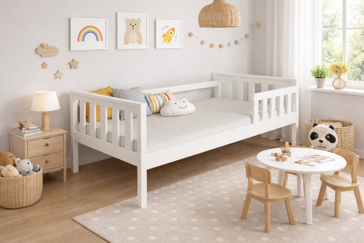 Táto posteľ predstavuje ideálnu voľbu pre modernú detskú izbu, kde sa kladie dôraz na bezpečnosť, funkčnosť a nadčasový dizajn. Tento model je dodávaný vrátane kvalitného roštu a bol starostlivo navrhnutý podľa princípov Montessori pedagogiky, ktoré podporujú samostatnosť a prirodzený rozvoj dieťaťa. Konštrukcia postele je vyrobená z masívneho borovicového dreva, ktoré vyniká svojou pevnosťou, odolnosťou a dlhou životnosťou. Povrch dreva je ošetrený ekologickými farbami na vodnej báze - sú bez zápachu, zdravotne nezávadné a šetrné k životnému prostrediu, čo zaručuje zdravé prostredie pre vaše dieťa. Pre maximálnu bezpečnosť je posteľ vybavená obvodovými ochrannými bariérkami a praktickou kratšou bariérkou so vstupom, ktorá je nastaviteľná a umožňuje montáž na ľavú, pravú stranu, alebo jej úplné odobratie podľa aktuálnych potrieb a dispozícií izby. Zaoblené hrany a precízne spracovanie eliminujú riziko zranenia a poskytujú vysoký komfort pri každodennom používaní. Elegantný a čistý dizajn ľahko zapadne do akéhokoľvek interiéru detskej izby a je možné ho kombinovať s ďalšími kusmi nábytku v rôznych štýloch. Posteľ je dostupná v niekoľkých veľkostiach aj farebných prevedeniach, aby dokonale zodpovedala vašim požiadavkám a priestoru. Vďaka svojej variabilite a premyslenej konštrukcii je skvelou voľbou, ktorá rastie spolu s Vaším dieťaťom a prispôsobuje sa jeho vývoju aj meniacim sa potrebám.