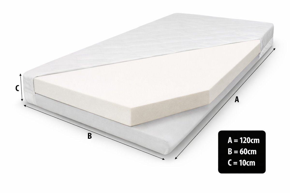 Molitanový matrac do detskej postieľky 120x60 cm je pohodlný, priedušný a ľahko udržiavateľný. Je vyrobená z kvalitného molitanu s tvrdosťou T18, ktorý podporuje správnu polohu chrbtice dieťaťa. Poťah matraca je snímateľný a prateľný, čo zaisťuje hygienické spánkové prostredie. Matrac je vhodný do všetkých typizovaných postieľok aj do cestovných postieľok. Ponúkame ju v bielej farbe za výhodnú cenu. Objednajte si ju ešte dnes a doprajte svojmu dieťaťu kvalitný a zdravý spánok. Matrac molitanový 120x60 cm - ideálna voľba pre Vaše bábätko.