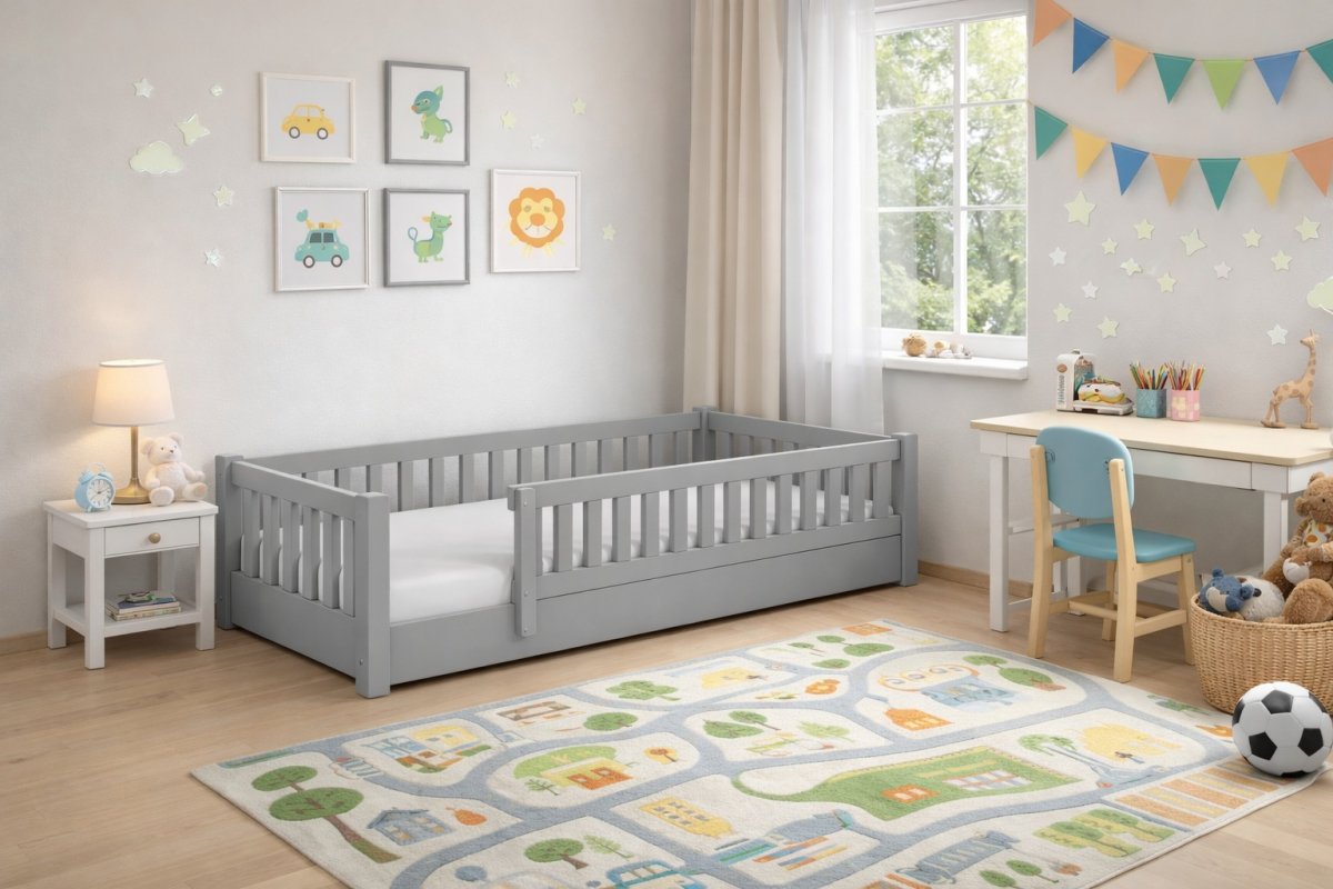Táto posteľ predstavuje ideálnu voľbu pre modernú detskú izbu, kde sa kladie dôraz na bezpečnosť, funkčnosť a nadčasový dizajn. Tento model je dodávaný vrátane kvalitného roštu a bol starostlivo navrhnutý podľa princípov Montessori pedagogiky, ktoré podporujú samostatnosť a prirodzený rozvoj dieťaťa. Konštrukcia postele je vyrobená z masívneho borovicového dreva, ktoré vyniká svojou pevnosťou, odolnosťou a dlhou životnosťou. Povrch dreva je ošetrený ekologickými farbami na vodnej báze - sú bez zápachu, zdravotne nezávadné a šetrné k životnému prostrediu, čo zaručuje zdravé prostredie pre vaše dieťa. Pre maximálnu bezpečnosť je posteľ vybavená obvodovými ochrannými bariérkami a praktickou kratšou bariérkou so vstupom, ktorá je nastaviteľná a umožňuje montáž na ľavú, pravú stranu, alebo jej úplné odobratie podľa aktuálnych potrieb a dispozícií izby. Zaoblené hrany a precízne spracovanie eliminujú riziko zranenia a poskytujú vysoký komfort pri každodennom používaní. Elegantný a čistý dizajn ľahko zapadne do akéhokoľvek interiéru detskej izby a je možné ho kombinovať s ďalšími kusmi nábytku v rôznych štýloch. Posteľ je dostupná v niekoľkých veľkostiach aj farebných prevedeniach, aby dokonale zodpovedala vašim požiadavkám a priestoru. Vďaka svojej variabilite a premyslenej konštrukcii je skvelou voľbou, ktorá rastie spolu s Vaším dieťaťom a prispôsobuje sa jeho vývoju aj meniacim sa potrebám.