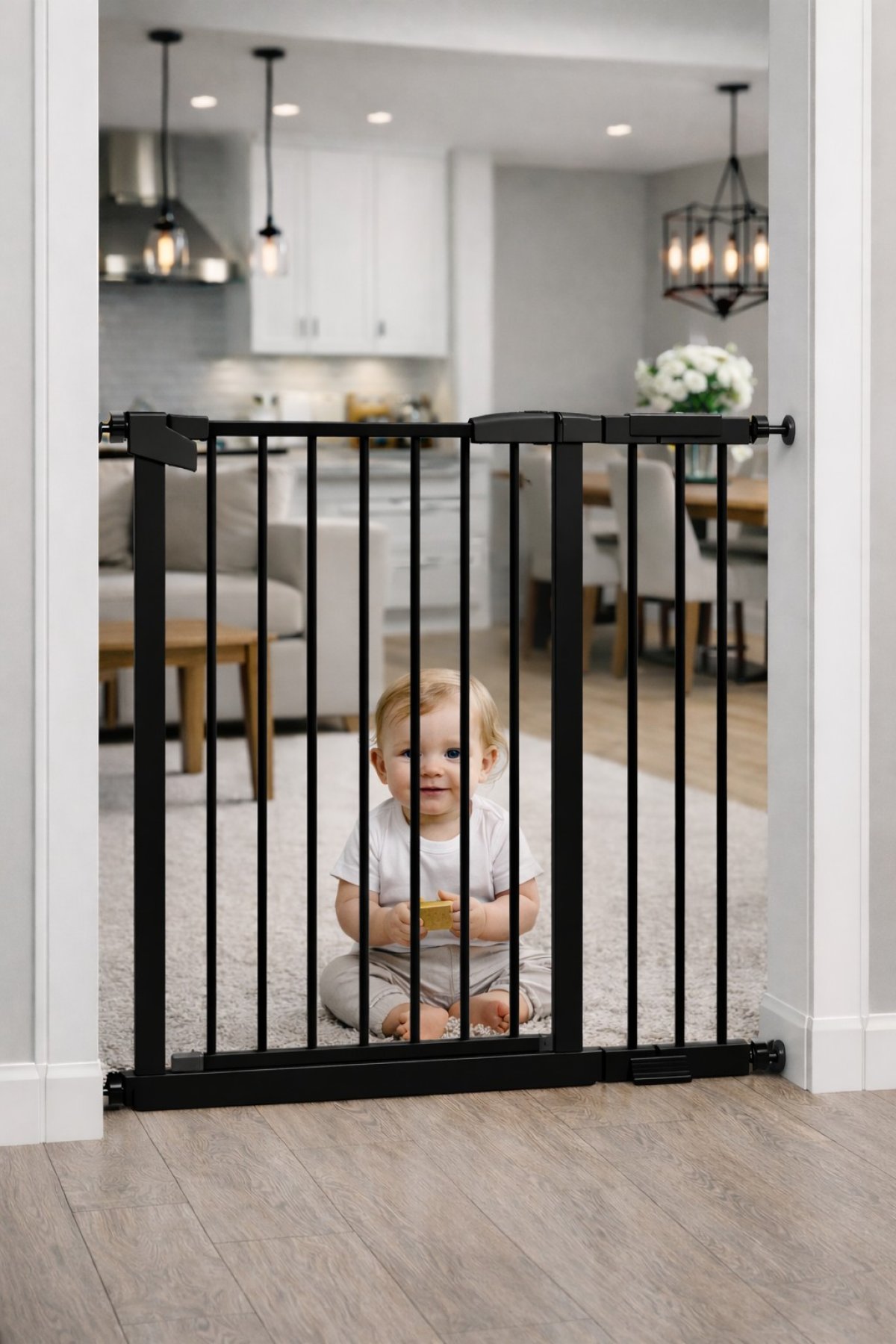 Kvalitná bezpečnostná zábrana, vhodná pre otvor v rozmere 97-104 cm. Spoľahlivá ochrana ako Vašich ratolestí aj domácich maznáčikov, pred nechceným vstupom na schodisko, do dverí a pod.