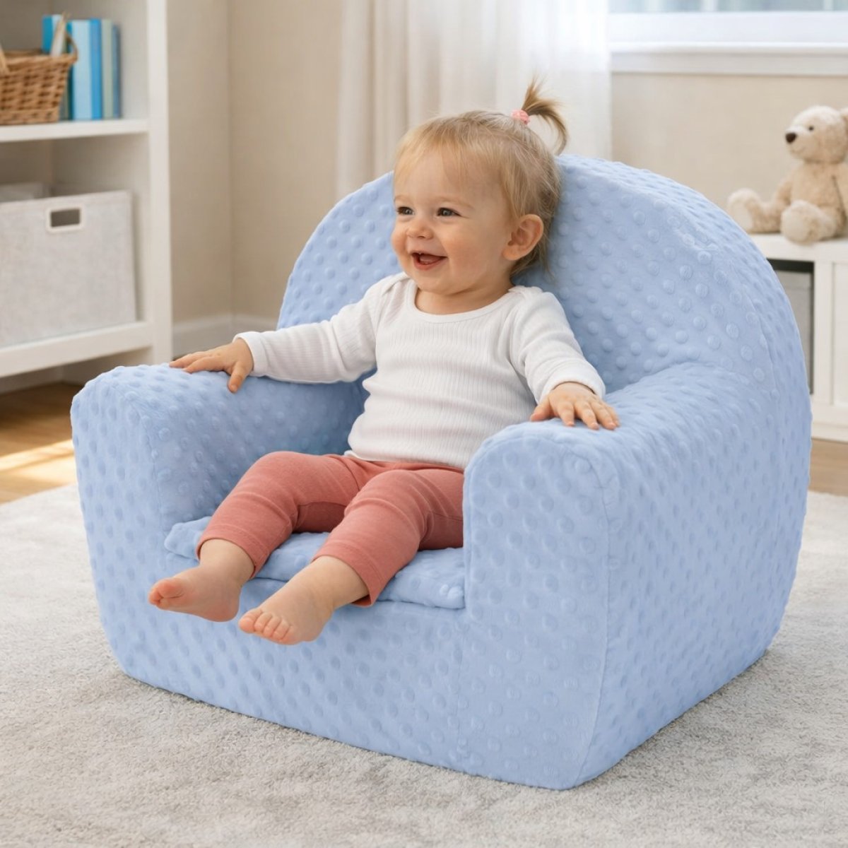 Absencia pevnej konštrukcie a výroba z ľahkej peny umožňuje dieťaťu s kreslom manipulovať podľa ľubovôle.
