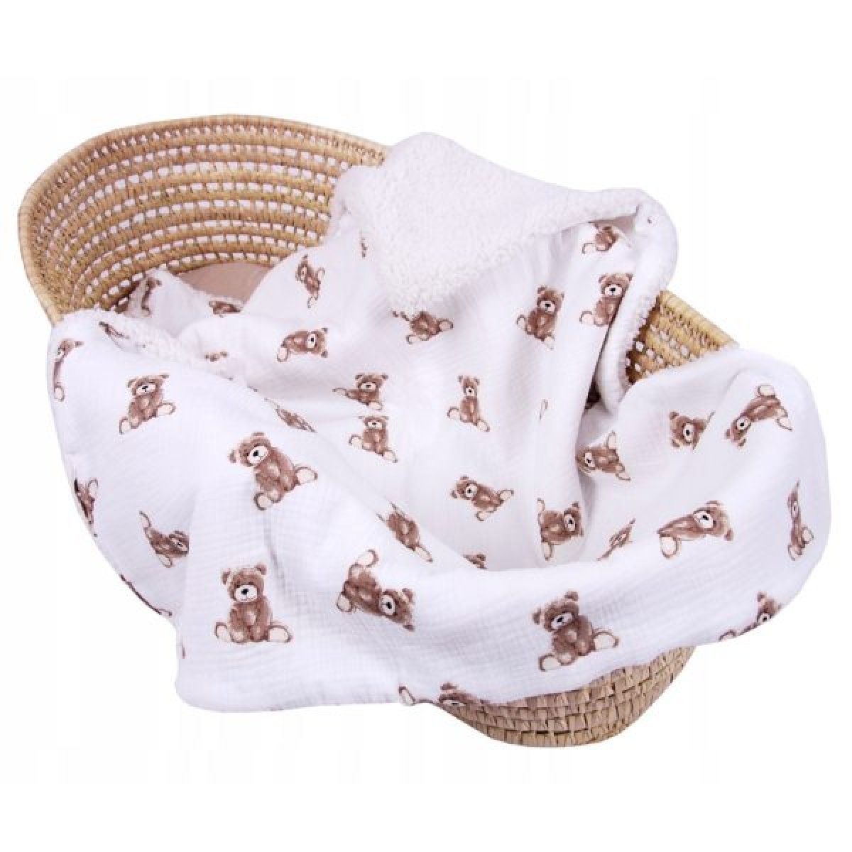 Detská deka s mäkkým kožúškom v kombinácii s jemným mušelínom je ideálnym doplnkom pre vaše dieťa, ktorý ho zahreje nielen počas chladných večerov, ale aj pri jesenných a zimných prechádzkach. Vďaka svojej našuchorené štruktúre a teplým vlastnostiam poskytuje maximálny komfort a útulnosť. Vlastnosti: Mäkká a jemná na dotyk Našuchorený a teplý materiál, ideálny pre chladné dni Krásny vzor, ktorý poteší nielen dieťa, ale aj rodičov Možno prať v práčke do 30 ° C pre ľahkú údržbu Certifikované podľa bezpečnostného štandardu OEKO-TEX STANDARD 100, čo zaisťuje bezpečnosť pre citlivú pokožku dieťaťa Rozmer: 100 x 75 cm