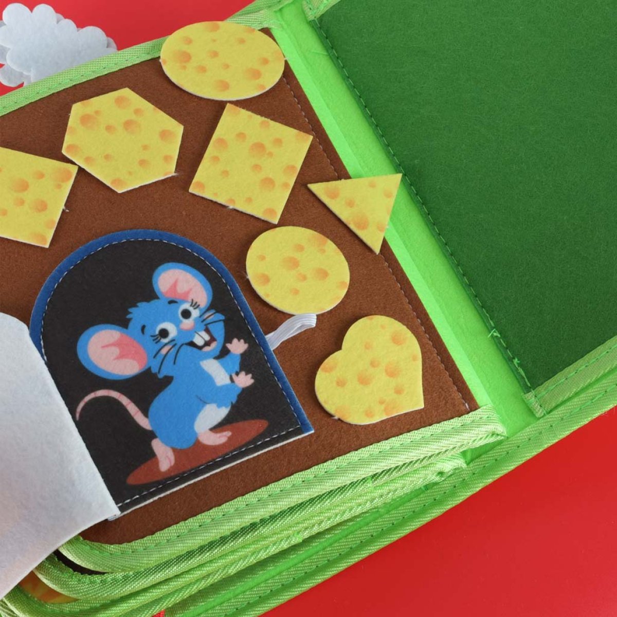 Quiet Book je vyrobená z mäkkých bezpečných materiálov, príjemných na dotyk, a vďaka zatváraniu na zips je ideálna na cestovanie, do auta, do čakární aj na doma. Všetky časti sú navrhnuté tak, aby deti podporovali v samostatnosti a zábavnej forme učenia.