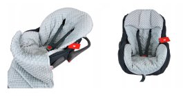Fusak má otvory pre päťbodové bezpečnostné pásy a opierku hlavy, vďaka ktorým spací vak neschádza z kočíka alebo autosedačky.