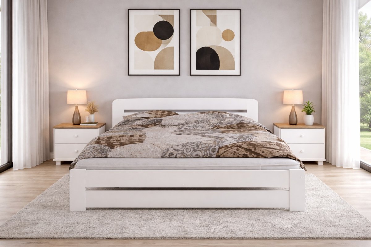Naša posteľ z masívu borovice je ideálnou voľbou pre tých, ktorí hľadajú kombináciu pevnosti, funkčnosti a estetického vzhľadu. Vyberte si svoj variant ešte dnes! Súčasťou postele je aj latový rošt, ktorý zaisťuje optimálnu podporu a komfort počas spánku. Táto pevná a stabilná posteľ je vyrobená z masívneho dreva borovice o hrúbke 25 - 28 mm, čo zaručuje jej stabilitu a dlhú životnosť. Posteľ je opatrená dvoma vrstvami bezfarebného ekologického a zdravotne nezávadného laku, ktorý zvyšuje odolnosť proti opotrebovaniu a zároveň zdôrazňuje prirodzenú krásu dreva. K dispozícii sú aj farebné varianty v odtieňoch jelše, duba a orecha. Tieto varianty sú najskôr morené vo vyššie spomínaných odtieňoch a následne dvakrát lakované priehľadným lakom, čo im dodáva jedinečný a elegantný vzhľad. Samotná montáž postele je veľmi jednoduchá, kedy pomocou skrutiek, zaisťovacích matíc a drevárskych kolíkov postavíte dve čelá postele proti sebe a vložíte medzi ne z každej bočnej strany bočnice, na ktorých sú zároveň namontované podklady na pripevnenie roštu. Pri dvojposteľoví (120x200 až 180x200 cm) sa ešte vkladá tzv. piata stredová noha, ktorá stredom postele podopiera v polovici rošty. Súčasťou kompletu šróbenia je aj montážna kľučka. Rozmerové značenie postele zároveň určuje veľkosť otvoru pre matrac, resp. rozmer matraca. Na postele poskytujeme dvojročnú záruku. Odporúčame k tomuto produktu dokúpiť: Matrac - nakupujte - TU Plachty - nakupujte - TU Úložný priestor - nakupujte - TU Nočné stolíky, komody atď. - nakupujte - TU Prikrývky, vankúše, chrániče, toppery - nakupujte - TU Rozmery postele: Rozmery postele sú kľúčové pre pohodlie a funkčnosť spálne. Výška postele by mala byť taká, aby ste mohli ľahko vstávať a ľahať. Rozmery postele môžu ovplyvniť celkový vzhľad a funkčnosť vašej spálne. V našej ponuke nájdete aj postele zvýšené. To je obzvlášť dôležité pre staršie osoby alebo osoby s obmedzenou pohyblivosťou. Rozmery postele 80x200 cm a 90x200 cm sú všeobecne považované za štandardné pre jednolôžko. Tieto rozmery postele sú ideálne pre jednotlivcov a nájdu uplatnenie v spálni, študentskej izbe, hosťovskej izbe a ďalších izbách. Nami ponúkané postele, možno doplniť matracom, nočnými stolíkmi, komodou, skriňou aj úložným priestorom. Postele s rozmermi 120x200 cm a 140x200 cm sú považované za veľmi komfortné jednolôžka. Tento rozmer postele je ideálny pre jednotlivcov, ktorí hľadajú viac priestoru ako štandardné jednolôžko ponúka. Rozmery postele 160x200 cm a 180x200 cm sú považované za štandardné pre dvojlôžkovú posteľ. Pred nákupom postele sa uistite, že máte dostatok miesta vo svojej spálni. Materiál postele: Masív borovice je typ dreva, ktorý je známy svojou dobrou pevnosťou a dlhou trvanlivosťou. Borovicové drevo sa radí medzi mäkké dreviny. Je o málinko tvrdšia ako masívny smrek, ale lepšie sa opracováva. Borovicové drevo vyniká krásnou farbou a okúzľujúcou kresbou. Má svetlú farbu, ktorá vďaka obsahu jadra miestami prechádza až do oranžovo hnedého alebo červenkastého odtieňa. Tento materiál je často používaný v nábytkárstve, napríklad na výrobu postelí alebo knižníc. Výrobky z masívu borovice sú obľúbené pre svoj prírodný vzhľad a trvanlivosť. Typ postele: Klasická posteľ je typ postele, ktorý sa skladá z troch základných častí: rámu, roštu a matraca. Rám postele môže byť vyrobený z rôznych materiálov, vrátane dreva, kovu alebo laminátu. Do rámu sa vkladá rošt. Matrac je položený na rošt a môže byť vyrobený z rôznych materiálov, vrátane peny, latexu alebo pružín. Matrac: Veľkosť matraca by mala zodpovedať rozmerom postele. Matrac sa delí podľa materiálu výroby na matrace z PUR peny, matrace z HR peny, matrace z lenivej peny, pružinové matrace, taštičkové matrace, latexové matrace, lamelové matrace, sendvičové matrace, antibakteriálne matrace. Matrace môžu byť mäkké, stredne tvrdé (H2, H3), tvrdé alebo veľmi tvrdé (H4). Tvrdosť matraca je dôležitý faktor, ktorý ovplyvňuje pohodlie a podporu, ktorú matrac poskytuje. Pri výbere matraca je dôležité zvážiť niekoľko faktorov, vrátane vašej preferovanej polohy spánku, vašej telesnej hmotnosti a akékoľvek zdravotné problémy, ktoré môžete mať. Latkový rošt ZADARMO: Latkový rošt je ideálnou voľbou pre tých, ktorí hľadajú kvalitný, pohodlný a cenovo dostupný podklad pod matrac. Latkový rošt sa skladá z drevených líšt, ktoré sú spojené textíliou. Rošt poskytuje dobrú podporu tela, cirkuláciu vzduchu a odvádzanie vlhkosti. Rošt postele je tvorený 12 priečkami, ktoré sú spojené textíliou, priečky roštu sú z masívu borovice. Medzery medzi priečkami sú cca 11 cm. Spracovanie - lakovaná posteľ: Lakované postele sú obľúbené pre svoj elegantný vzhľad a odolnosť. Lakovaný povrch je hladký, ľahko sa čistí a je odolný voči poškriabaniu a opotrebovaniu. Je však dôležité mať na pamäti, že biela farba je obzvlášť citlivá na nežiaduce vonkajšie faktory, ako je slnečné žiarenie. Dlhodobé vystavenie postele týmto podmienkam môže spôsobiť vizuálne zmeny v podobe zafarbenia. Máte záujem o veľkoobchodnú spoluprácu? Alebo chcete získať zaujímavú cenovú ponuku na väčšie množstvo našich produktov? Obchodníkom a firmám, ponúkame možnosť nákupu na veľkoobchodné ceny. Zašlite dopyt na ondera@seznam.cz, veľmi radi sa Vám budeme venovať. Poprípade sa zaregistrujte sa ("UŽÍVATEĽ" - v hornej lište), vyplníte osobné údaje a zakliknete "MÁME ZÁUJEM O VEĽKOOBCHODNÚ SPOLUPRÁCU" a zadáte fakturačné údaje. Po ich kontrole, Vám bude povolený prístup do veľkoobchodu.