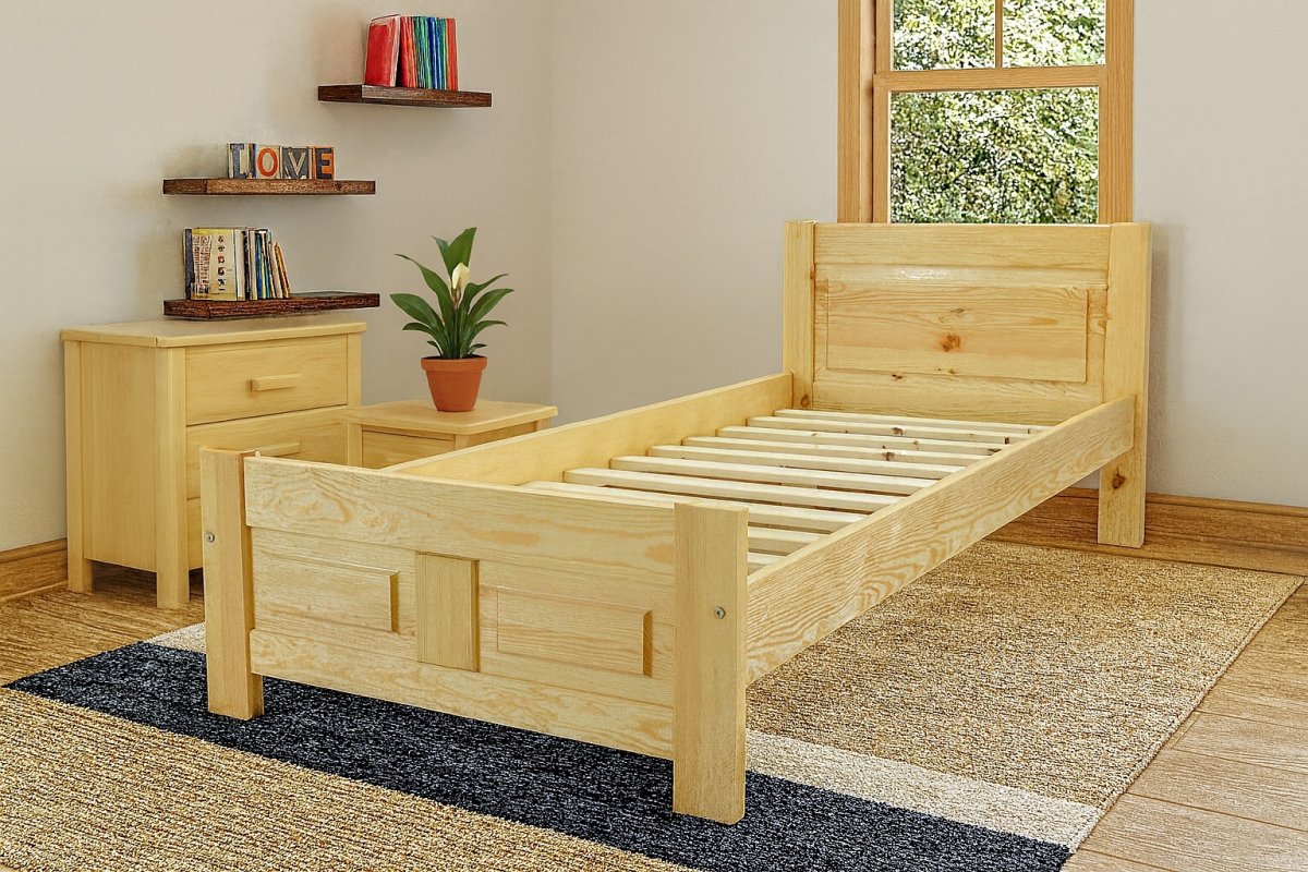 Táto pevná a stabilná posteľ je vyrobená z masívneho dreva borovice o hrúbke 25 - 28 mm, čo zaručuje jej stabilitu a dlhú životnosť