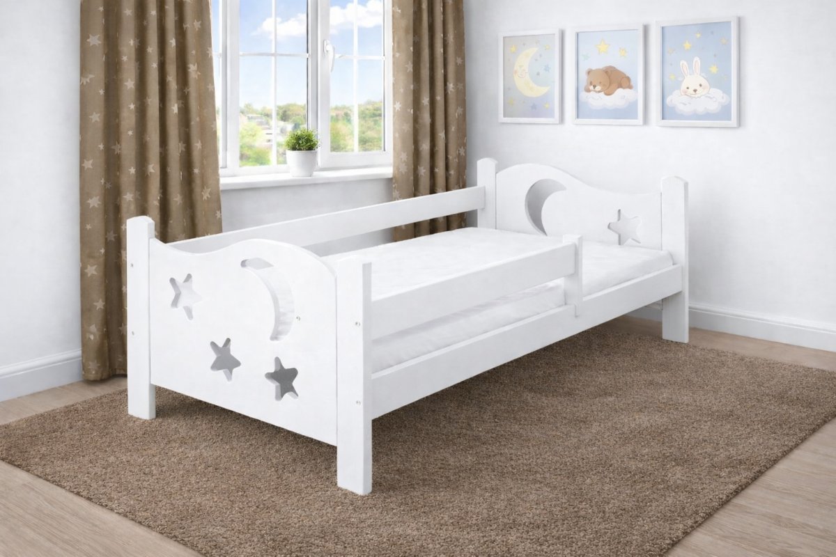 Posteľ pre väčšie deti s ochrannou bariérky, ktorá chráni dieťa pred pádom. Súčasťou postele je bariérky variabilná na ľubovoľnú stranu. Táto posteľ je vyrobená z masívneho borovicového dreva. Súčasťou tejto postieľky sú z bezpečnostných dôvodov zaoblené rohy. Posteľ je lakovaná nezávadným ekologickým lakom, vhodným pre styk s dieťaťom. Súčasťou je pevný a stabilný rošt. Znížený prah, umožňuje používať túto posteľ aj pre najmenšie deti. Nosnosť tejto postele je 80 kg. Balenie obsahuje: posteľ s bariérami latkový rošt spojovací materiál šuplík Odporúčame k tomuto produktu dokúpiť: Matrac - nakupujte - TU Plachty - nakupujte - TU Nočné stolíky, komody atď. - nakupujte - TU Prikrývky, vankúše, chrániče, toppery - nakupujte - TU Rozmery postele: Rozmery postele sú kľúčové pre pohodlie a funkčnosť spálne. Výška postele by mala byť taká, aby ste mohli ľahko vstávať a ľahať. Rozmery postele môžu ovplyvniť celkový vzhľad a funkčnosť vašej spálne. V našej ponuke nájdete aj postele zvýšené. To je obzvlášť dôležité pre staršie osoby alebo osoby s obmedzenou pohyblivosťou. Rozmery postele 80x200 cm a 90x200 cm sú všeobecne považované za štandardné pre jednolôžko. Tieto rozmery postele sú ideálne pre jednotlivcov a nájdu uplatnenie v spálni, študentskej izbe, hosťovskej izbe a ďalších izbách. Nami ponúkané postele, možno doplniť matracom, nočnými stolíkmi, komodou, skriňou aj úložným priestorom. Postele s rozmermi 120x200 cm a 140x200 cm sú považované za veľmi komfortné jednolôžka. Tento rozmer postele je ideálny pre jednotlivcov, ktorí hľadajú viac priestoru ako štandardné jednolôžko ponúka. Rozmery postele 160x200 cm a 180x200 cm sú považované za štandardné pre dvojlôžkovú posteľ. Pred nákupom postele sa uistite, že máte dostatok miesta vo svojej spálni. Materiál postele: Masív borovice je typ dreva, ktorý je známy svojou dobrou pevnosťou a dlhou trvanlivosťou. Borovicové drevo sa radí medzi mäkké dreviny. Je o málinko tvrdšia ako masívny smrek, ale lepšie sa opracováva. Borovicové drevo vyniká krásnou farbou a okúzľujúcou kresbou. Má svetlú farbu, ktorá vďaka obsahu jadra miestami prechádza až do oranžovo hnedého alebo červenkastého odtieňa. Tento materiál je často používaný v nábytkárstve, napríklad na výrobu postelí alebo knižníc. Výrobky z masívu borovice sú obľúbené pre svoj prírodný vzhľad a trvanlivosť. Typ postele: Klasická posteľ je typ postele, ktorý sa skladá z troch základných častí: rámu, roštu a matraca. Rám postele môže byť vyrobený z rôznych materiálov, vrátane dreva, kovu alebo laminátu. Do rámu sa vkladá rošt. Matrac je položený na rošt a môže byť vyrobený z rôznych materiálov, vrátane peny, latexu alebo pružín. Matrac: Veľkosť matraca by mala zodpovedať rozmerom postele. Matrac sa delí podľa materiálu výroby na matrace z PUR peny, matrace z HR peny, matrace z lenivej peny, pružinové matrace, taštičkové matrace, latexové matrace, lamelové matrace, sendvičové matrace, antibakteriálne matrace. Matrace môžu byť mäkké, stredne tvrdé (H2, H3), tvrdé alebo veľmi tvrdé (H4). Tvrdosť matraca je dôležitý faktor, ktorý ovplyvňuje pohodlie a podporu, ktorú matrac poskytuje. Pri výbere matraca je dôležité zvážiť niekoľko faktorov, vrátane vašej preferovanej polohy spánku, vašej telesnej hmotnosti a akékoľvek zdravotné problémy, ktoré môžete mať. Latkový rošt ZADARMO: Latkový rošt je ideálnou voľbou pre tých, ktorí hľadajú kvalitný, pohodlný a cenovo dostupný podklad pod matrac. Latkový rošt sa skladá z drevených líšt, ktoré sú spojené textíliou. Rošt poskytuje dobrú podporu tela, cirkuláciu vzduchu a odvádzanie vlhkosti. Rošt postele je tvorený 12 priečkami, ktoré sú spojené textíliou, priečky roštu sú z masívu borovice. Medzery medzi priečkami sú cca 11 cm. Spracovanie - lakovaná posteľ: Lakované postele sú obľúbené pre svoj elegantný vzhľad a odolnosť. Lakovaný povrch je hladký, ľahko sa čistí a je odolný voči poškriabaniu a opotrebovaniu. Je však dôležité mať na pamäti, že biela farba je obzvlášť citlivá na nežiaduce vonkajšie faktory, ako je slnečné žiarenie. Dlhodobé vystavenie postele týmto podmienkam môže spôsobiť vizuálne zmeny v podobe zafarbenia. Máte záujem o veľkoobchodnú spoluprácu? Alebo chcete získať zaujímavú cenovú ponuku na väčšie množstvo našich produktov? Obchodníkom a firmám, ponúkame možnosť nákupu na veľkoobchodné ceny. Zašlite dopyt na ondera@seznam.cz, veľmi radi sa Vám budeme venovať. Poprípade sa zaregistrujte sa ("UŽÍVATEĽ" - v hornej lište), vyplníte osobné údaje a zakliknete "MÁME ZÁUJEM O VEĽKOOBCHODNÚ SPOLUPRÁCU" a zadáte fakturačné údaje. Po ich kontrole, Vám bude povolený prístup do veľkoobchodu.