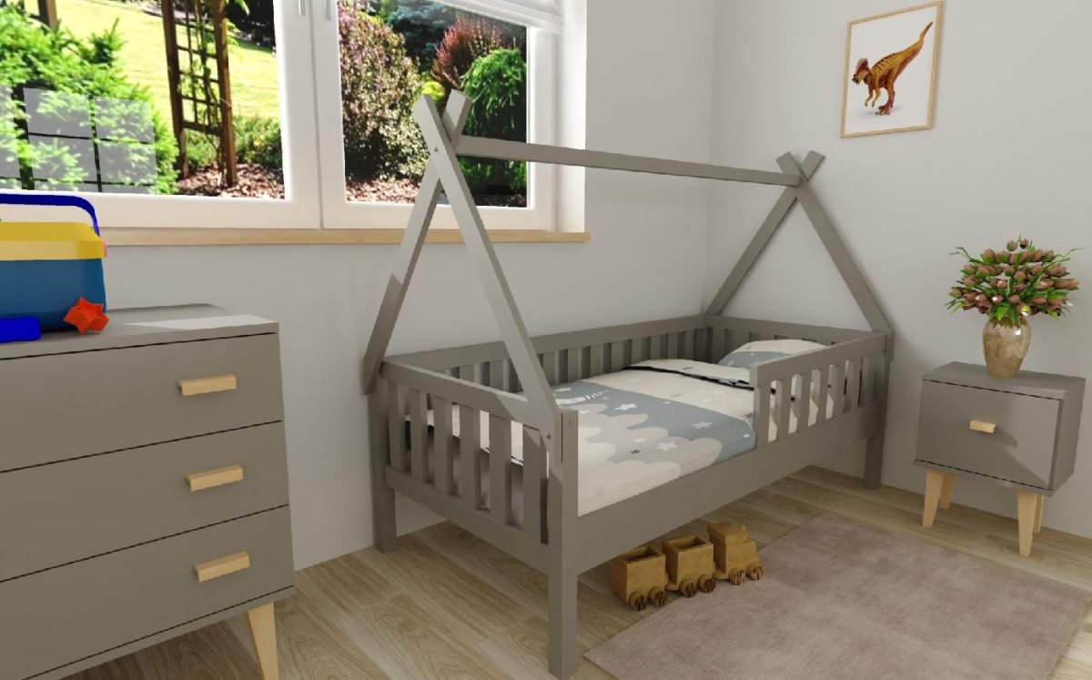 Máte doma malého nezbedníka Túži po pravom indiánskej teepee? Preto Vám ponúkame túto jedinečnú a u našich zákazníkov dlhodobo najobľúbenejšiu posteľ. Postieľka poslúži nielen k spokojnému spánku Vašej ratolesti, ale taktiež ako kútik na hranie a čítanie pre malých indiánov. Posteľ je vyrobená z masívu borovice a je dodávaná vrátane roštu. Zaoblené rohy, zaručujú bezpečnosť tohto fantastického tepee. Dodávané v demonte. Odporúčame k tomuto produktu dokúpiť: Matrac - nakupujte - TU Plachty - nakupujte - TU Úložný priestor - nakupujte - TU Nočné stolíky, komody atď. - nakupujte - TU Prikrývky, vankúše, chrániče, toppery - nakupujte - TU Rozmery postele: Rozmery postele sú kľúčové pre pohodlie a funkčnosť spálne. Výška postele by mala byť taká, aby ste mohli ľahko vstávať a ľahať. Rozmery postele môžu ovplyvniť celkový vzhľad a funkčnosť vašej spálne. V našej ponuke nájdete aj postele zvýšené. To je obzvlášť dôležité pre staršie osoby alebo osoby s obmedzenou pohyblivosťou. Rozmery postele 80x200 cm a 90x200 cm sú všeobecne považované za štandardné pre jednolôžko. Tieto rozmery postele sú ideálne pre jednotlivcov a nájdu uplatnenie v spálni, študentskej izbe, hosťovskej izbe a ďalších izbách. Nami ponúkané postele, možno doplniť matracom, nočnými stolíkmi, komodou, skriňou aj úložným priestorom. Postele s rozmermi 120x200 cm a 140x200 cm sú považované za veľmi komfortné jednolôžka. Tento rozmer postele je ideálny pre jednotlivcov, ktorí hľadajú viac priestoru ako štandardné jednolôžko ponúka. Rozmery postele 160x200 cm a 180x200 cm sú považované za štandardné pre dvojlôžkovú posteľ. Pred nákupom postele sa uistite, že máte dostatok miesta vo svojej spálni. Materiál postele: Masív borovice je typ dreva, ktorý je známy svojou dobrou pevnosťou a dlhou trvanlivosťou. Borovicové drevo sa radí medzi mäkké dreviny. Je o málinko tvrdšia ako masívny smrek, ale lepšie sa opracováva. Borovicové drevo vyniká krásnou farbou a okúzľujúcou kresbou. Má svetlú farbu, ktorá vďaka obsahu jadra miestami prechádza až do oranžovo hnedého alebo červenkastého odtieňa. Tento materiál je často používaný v nábytkárstve, napríklad na výrobu postelí alebo knižníc. Výrobky z masívu borovice sú obľúbené pre svoj prírodný vzhľad a trvanlivosť. Typ postele: Klasická posteľ je typ postele, ktorý sa skladá z troch základných častí: rámu, roštu a matraca. Rám postele môže byť vyrobený z rôznych materiálov, vrátane dreva, kovu alebo laminátu. Do rámu sa vkladá rošt. Matrac je položený na rošt a môže byť vyrobený z rôznych materiálov, vrátane peny, latexu alebo pružín. Matrac: Veľkosť matraca by mala zodpovedať rozmerom postele. Matrac sa delí podľa materiálu výroby na matrace z PUR peny, matrace z HR peny, matrace z lenivej peny, pružinové matrace, taštičkové matrace, latexové matrace, lamelové matrace, sendvičové matrace, antibakteriálne matrace. Matrace môžu byť mäkké, stredne tvrdé (H2, H3), tvrdé alebo veľmi tvrdé (H4). Tvrdosť matraca je dôležitý faktor, ktorý ovplyvňuje pohodlie a podporu, ktorú matrac poskytuje. Pri výbere matraca je dôležité zvážiť niekoľko faktorov, vrátane vašej preferovanej polohy spánku, vašej telesnej hmotnosti a akékoľvek zdravotné problémy, ktoré môžete mať. Latkový rošt ZADARMO: Latkový rošt je ideálnou voľbou pre tých, ktorí hľadajú kvalitný, pohodlný a cenovo dostupný podklad pod matrac. Latkový rošt sa skladá z drevených líšt, ktoré sú spojené textíliou. Rošt poskytuje dobrú podporu tela, cirkuláciu vzduchu a odvádzanie vlhkosti. Rošt postele je tvorený 12 priečkami, ktoré sú spojené textíliou, priečky roštu sú z masívu borovice. Medzery medzi priečkami sú cca 11 cm. Spracovanie - lakovaná posteľ: Lakované postele sú obľúbené pre svoj elegantný vzhľad a odolnosť. Lakovaný povrch je hladký, ľahko sa čistí a je odolný voči poškriabaniu a opotrebovaniu. Je však dôležité mať na pamäti, že biela farba je obzvlášť citlivá na nežiaduce vonkajšie faktory, ako je slnečné žiarenie. Dlhodobé vystavenie postele týmto podmienkam môže spôsobiť vizuálne zmeny v podobe zafarbenia.