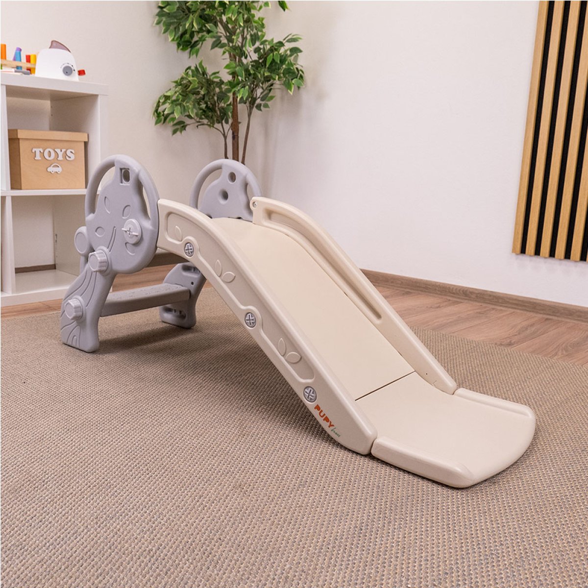 Detská šmykľavka PUPYHOU je ideálnou voľbou pre prvé dobrodružstvo vašich najmenších. Ponúka bezpečnú a zábavnú aktivitu, ktorá rozvíja motoriku, rovnováhu aj sebaistotu dieťaťa. Je vhodná na použitie v interiéri aj exteriéri. Šmykľavka je vyrobená z kvalitného, pevného a zdravotne nezávadného plastu, ktorý zaručuje dlhú životnosť a jednoduchú údržbu. Vďaka širokým schodíkom s protišmykovým povrchom a vysokým bočným okrajom je jazda úplne bezpečná. Vďaka modernému dizajnu v neutrálnych farbách sa skvele hodí do každej detskej izbičky aj herne. Montáž je jednoduchá a nevyžaduje žiadne špeciálne náradie. Vlastnosti: vhodná pre deti od 18 mesiacov stabilná konštrukcia pre maximálnu bezpečnosť protišmykové schodíky a široká základňa vysoké bočné okraje pre istotu pri jazde kvalitný a odolný plast bez ostrých hrán jednoduchá montáž bez potreby náradia možnosť použitia v interiéri aj vonku Ideálna voľba pre narodeniny, Vianoce aj „len tak“ pre radosť. Objednajte ešte dnes a sledujte, ako sa váš malý dobrodruh baví aj učí zároveň! Vlastníte predajňu či eshop a chcete ponúkať produkty PupyHou? Postačí sa zaregistrovať na www.pupyhou.cz, kde Vám spustíme veľkoobchodný prístup. Potom dostanete marketingové materiály a spolupráca môže začať.