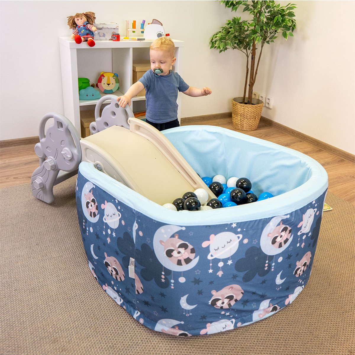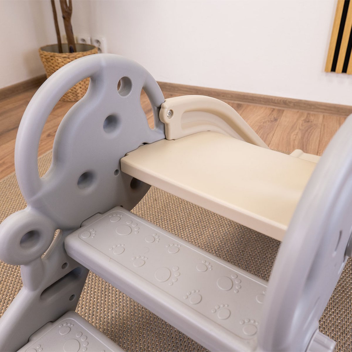 Vďaka modernému dizajnu v neutrálnych farbách sa skvele hodí do každej detskej izbičky aj herne. Montáž je jednoduchá a nevyžaduje žiadne špeciálne náradie.