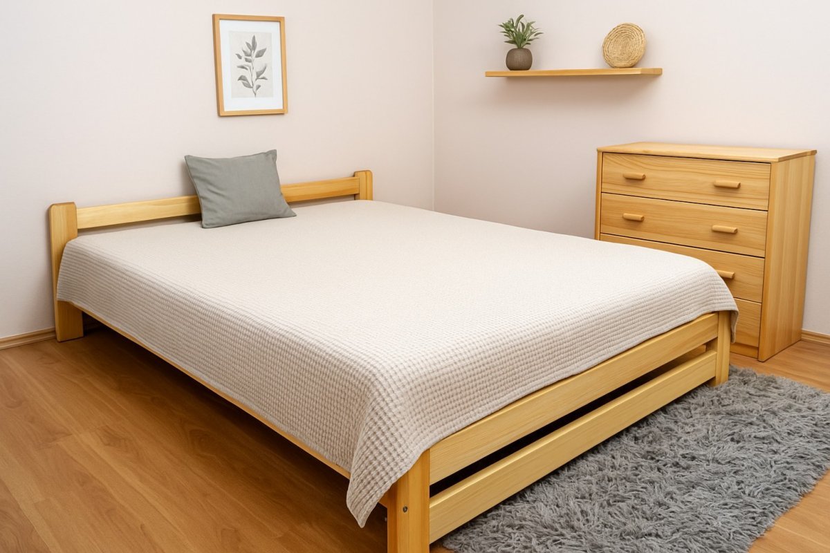 Zvýšená posteľ z masívu borovice je moderná posteľ, ktorá je vyrábaná z kvalitného a prírodného dreva borovice. Posteľ je povrchovo upravená kvalitným ekologickým vodou riediteľným lakom, ktorý je zdravotne nezávadný. Tento lak chráni drevo pred vlhkosťou a mechanickým poškodením. Posteľ poskytuje zvýšenú polohu ľahu vo výške cca 34 cm, čo je vhodné nielen pre seniorov, ale aj pre osoby s problémami pohybového aparátu. Naša posteľ z masívu borovice je ideálnou voľbou pre tých, ktorí hľadajú kombináciu pevnosti, funkčnosti a estetického vzhľadu. Vyberte si svoj variant ešte dnes! Táto pevná a stabilná posteľ je vyrobená z masívneho dreva borovice o hrúbke 25 - 28 mm, čo zaručuje jej stabilitu a dlhú životnosť Posteľ je opatrená dvoma vrstvami bezfarebného ekologického a zdravotne nezávadného laku, ktorý zvyšuje odolnosť proti opotrebovaniu a zároveň zdôrazňuje prirodzenú krásu dreva. K dispozícii sú aj farebné varianty v odtieňoch jelše, duba a orecha. Tieto varianty sú najskôr morené vo vyššie spomínaných odtieňoch a následne dvakrát lakované priehľadným lakom, čo im dodáva jedinečný a elegantný vzhľad. Samotná montáž postele je veľmi jednoduchá, kedy pomocou skrutiek, zaisťovacích matíc a drevárskych kolíkov postavíte dve čelá postele proti sebe a vložíte medzi ne z každej bočnej strany bočnice, na ktorých sú zároveň namontované podklady na pripevnenie roštu. Pri dvojposteľoví (120x200 až 180x200 cm) sa ešte vkladá tzv. piata stredová noha, ktorá stredom postele podopiera v polovici rošty. Súčasťou kompletu šróbenia je aj montážna kľučka. Rozmerové značenie postele zároveň určuje veľkosť otvoru pre matrac, resp. rozmer matraca. Na postele poskytujeme dvojročnú záruku. Matrace Relax: Prežite spánek jako nikdy předtím s naší pěnovou matrací T25. Každá noc je príležitosťou k dokonalému odpočinku a obnoveniu energie, a naše matrace vám v tom pomôže. Vďaka pokročilému designu a použitiu vysoko kvalitného penového materiálu ponúka matrace T25 optimálnu podporu pre každú časť vášho tela. Ergonomický tvar matrace je navrhnutý tak, aby sa prispôsobil kontúre tela, poskytuje vám nielen pohodlie, ale aj správnu podporu chrbtice a kĺbov. Svými vynikajúcimi vlastnosťami odolnosti a trvanlivosti vám matrace T25 so zníženou spoľahlivosťou po mnoho rokov. Či už ste nároční spáči, ktorí hľadajú podporu a komfort, alebo trpia bolesťami zad a kĺbov, naše matrace T25 je ideálnym riešením pre váš nočný spánek. Navyše, jej hypoalergénne vlastnosti a odolnosť proti roztočom zaistí čistotu a bezpečnosť vášho spánku. Užite si každú noc ako kúpele a každé ráno sa nechajte osviežiť a naplňte energiou. Získajte tu najlepšiu penovú matraci T25 pre vašu posteľ a zažite najlepší spánek, aký ste kedy mali. Súčasťou balenia: rám postele latkový rošt spojovací materiál návod na zostavenie matrac Relax Odporúčame k tomuto produktu dokúpiť: Plachty - nakupujte - TU Úložný priestor - nakupujte - TU Nočné stolíky, komody atď. - nakupujte - TU Prikrývky, vankúše, chrániče, toppery - nakupujte - TU Rozmery postele: Rozmery sú dôležité pre pohodlie a funkčnosť spálne. Výška postele by mala byť taká, abyste mohli snadno vstávat a lehat. Rozmery postele môžu ovplyvniť celkový vzhľad a funkčnosť vašej spálne. V našej ponuke nájdete aj postele. To je dôležité pre staršie osoby alebo osoby s obmedzenou pohyblivosťou. Rozmery postele 80x200 cm a 90x200 cm sú obecně považovány za standardní pro jednolůžko. Tieto rozmery postele sú ideálne pre jednotlivce a nachádzajú uplatnenie v ložnici, študentskej izbe, izbe pre hostí a ďalšie izby. Ponúkame Vám postele, možno doplniť matrace, nočné stoly, komodu, skríň a úložný priestor. Postele o rozmere 120x200 cm a 140x200 cm sú považované za veľmi komfortnú jednolôžku. Tento rozmer postele je ideálny pre jednotlivca, ktorý hľadá viac priestoru než štandardný jednolôžko ponúka. Rozmery postele 160x200 cm a 180x200 cm sú považované za štandardné pre dvojlôžkovú posteľ. Pred nákupom postele sa dostanete, že máte dostatok miesta vo svojej ložnici. Materiál postele: Masiv borovice je typ dreva, ktorý je známy svojou dobrou pevnosťou a dlhou trvanlivosťou. Borovicové drevo sa zaraďuje medzi mäkké dřeviny. Je o malinko tvrdší než masívny smrk, ale lepšie sa opracovává. Borovicové drevo vyniká krásnou farbou a okouzlujúcou kresbou. Má svetlo farbu, ktorá vďaka obsahu jadier prechádza až do oranžového hnedého alebo načervenalého odtieňa. Tento materiál je často používaný v nábytkárstve, napríklad na výrobu postelí alebo kníhoven. Výrobky z masivu borovice sú obľúbené pre svůj přírodní vzhled a trvanlivosť. Typ postele: Klasická posteľ je typ postele, ktorý sa skladá z troch základných častí: rámu, roštu a matraca. Rám postele môže byť vyrobený z rôznych materiálov vrátane dreva, kovu alebo laminátu. Do rámu sa vkladá rošt. Matrace je položená na rošt a môže byť vyrobená z rôznych materiálov, vrátane peny, latexu alebo pružiny. Laťkový rošt ZDARMA: Laťkový rošt je ideálnou voľbou pre tých, ktorí hľadajú kvalitný, pohodlný a cenovo dostupný podklad pod matraci. Laťkový rošt sa skladá z drevených lišt, ktoré sú spojené textilií. Rošt poskytuje dobrú podporu tela, cirkuláciu vzduchu a odvádzanie vlhkosti. Rošt postele je tvorený 12 príčkami, ktoré sú spojené textilií, príčky roštu sú z masívu borovice. Mezery medzi príčkami sú cca 11 cm. Zpracovanie - lakovaná posteľ: Lakované príspevoksú obľúbené pre svoj elegantný vzhľad a odolnosť. Lakovaný povrch je hladký, ľahko sa čistí a je odolný voči poškra