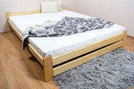 Naša posteľ z masívu borovice je ideálnou voľbou pre tých, ktorí hľadajú kombináciu pevnosti, funkčnosti a estetického vzhľadu. Vyberte si svoj variant ešte dnes! Súčasťou postele je aj latový rošt, ktorý zaisťuje optimálnu podporu a komfort počas spánku. Táto pevná a stabilná posteľ je vyrobená z masívneho dreva borovice o hrúbke 25 - 28 mm, čo zaručuje jej stabilitu a dlhú životnosť Posteľ je opatrená dvoma vrstvami bezfarebného ekologického a zdravotne nezávadného laku, ktorý zvyšuje odolnosť proti opotrebovaniu a zároveň zdôrazňuje prirodzenú krásu dreva. K dispozícii sú aj farebné varianty v odtieňoch jelše, duba a orecha. Tieto varianty sú najskôr morené vo vyššie spomínaných odtieňoch a následne dvakrát lakované priehľadným lakom, čo im dodáva jedinečný a elegantný vzhľad. Samotná montáž postele je veľmi jednoduchá, kedy pomocou skrutiek, zaisťovacích matíc a drevárskych kolíkov postavíte dve čelá postele proti sebe a vložíte medzi ne z každej bočnej strany bočnice, na ktorých sú zároveň namontované podklady na pripevnenie roštu. Pri dvojposteľoví (120x200 až 180x200 cm) sa ešte vkladá tzv. piata stredová noha, ktorá stredom postele podopiera v polovici rošty. Súčasťou kompletu šróbenia je aj montážna kľučka. Rozmerové značenie postele zároveň určuje veľkosť otvoru pre matrac, resp. rozmer matraca. Na postele poskytujeme dvojročnú záruku. Odporúčame k tomuto produktu dokúpiť: Matrac - nakupujte - TU Plachty - nakupujte - TU Úložný priestor - nakupujte - TU Nočné stolíky, komody atď. - nakupujte - TU Prikrývky, vankúše, chrániče, toppery - nakupujte - TU Rozmery postele: Rozmery postele sú kľúčové pre pohodlie a funkčnosť spálne. Výška postele by mala byť taká, aby ste mohli ľahko vstávať a ľahať. Rozmery postele môžu ovplyvniť celkový vzhľad a funkčnosť vašej spálne. V našej ponuke nájdete aj postele zvýšené. To je obzvlášť dôležité pre staršie osoby alebo osoby s obmedzenou pohyblivosťou. Rozmery postele 80x200 cm a 90x200 cm sú všeobecne považované za štandardné pre jednolôžko. Tieto rozmery postele sú ideálne pre jednotlivcov a nájdu uplatnenie v spálni, študentskej izbe, hosťovskej izbe a ďalších izbách. Nami ponúkané postele, možno doplniť matracom, nočnými stolíkmi, komodou, skriňou aj úložným priestorom. Postele s rozmermi 120x200 cm a 140x200 cm sú považované za veľmi komfortné jednolôžka. Tento rozmer postele je ideálny pre jednotlivcov, ktorí hľadajú viac priestoru ako štandardné jednolôžko ponúka. Rozmery postele 160x200 cm a 180x200 cm sú považované za štandardné pre dvojlôžkovú posteľ. Pred nákupom postele sa uistite, že máte dostatok miesta vo svojej spálni. Materiál postele: Masív borovice je typ dreva, ktorý je známy svojou dobrou pevnosťou a dlhou trvanlivosťou. Borovicové drevo sa radí medzi mäkké dreviny. Je o málinko tvrdšia ako masívny smrek, ale lepšie sa opracováva. Borovicové drevo vyniká krásnou farbou a okúzľujúcou kresbou. Má svetlú farbu, ktorá vďaka obsahu jadra miestami prechádza až do oranžovo hnedého alebo červenkastého odtieňa. Tento materiál je často používaný v nábytkárstve, napríklad na výrobu postelí alebo knižníc. Výrobky z masívu borovice sú obľúbené pre svoj prírodný vzhľad a trvanlivosť. Typ postele: Klasická posteľ je typ postele, ktorý sa skladá z troch základných častí: rámu, roštu a matraca. Rám postele môže byť vyrobený z rôznych materiálov, vrátane dreva, kovu alebo laminátu. Do rámu sa vkladá rošt. Matrac je položený na rošt a môže byť vyrobený z rôznych materiálov, vrátane peny, latexu alebo pružín. Matrac: Veľkosť matraca by mala zodpovedať rozmerom postele. Matrac sa delí podľa materiálu výroby na matrace z PUR peny, matrace z HR peny, matrace z lenivej peny, pružinové matrace, taštičkové matrace, latexové matrace, lamelové matrace, sendvičové matrace, antibakteriálne matrace. Matrace môžu byť mäkké, stredne tvrdé (H2, H3), tvrdé alebo veľmi tvrdé (H4). Tvrdosť matraca je dôležitý faktor, ktorý ovplyvňuje pohodlie a podporu, ktorú matrac poskytuje. Pri výbere matraca je dôležité zvážiť niekoľko faktorov, vrátane vašej preferovanej polohy spánku, vašej telesnej hmotnosti a akékoľvek zdravotné problémy, ktoré môžete mať. Latkový rošt ZADARMO: Latkový rošt je ideálnou voľbou pre tých, ktorí hľadajú kvalitný, pohodlný a cenovo dostupný podklad pod matrac. Latkový rošt sa skladá z drevených líšt, ktoré sú spojené textíliou. Rošt poskytuje dobrú podporu tela, cirkuláciu vzduchu a odvádzanie vlhkosti. Rošt postele je tvorený 12 priečkami, ktoré sú spojené textíliou, priečky roštu sú z masívu borovice. Medzery medzi priečkami sú cca 11 cm. Spracovanie - lakovaná posteľ: Lakované postele sú obľúbené pre svoj elegantný vzhľad a odolnosť. Lakovaný povrch je hladký, ľahko sa čistí a je odolný voči poškriabaniu a opotrebovaniu. Je však dôležité mať na pamäti, že biela farba je obzvlášť citlivá na nežiaduce vonkajšie faktory, ako je slnečné žiarenie. Dlhodobé vystavenie postele týmto podmienkam môže spôsobiť vizuálne zmeny v podobe zafarbenia. Máte záujem o veľkoobchodnú spoluprácu? Alebo chcete získať zaujímavú cenovú ponuku na väčšie množstvo našich produktov? Obchodníkom a firmám, ponúkame možnosť nákupu na veľkoobchodné ceny. Zašlite dopyt na ondera@seznam.cz, veľmi radi sa Vám budeme venovať. Poprípade sa zaregistrujte sa ("UŽÍVATEĽ" - v hornej lište), vyplníte osobné údaje a zakliknete "MÁME ZÁUJEM O VEĽKOOBCHODNÚ SPOLUPRÁCU" a zadáte fakturačné údaje. Po ich kontrole, Vám bude povolený prístup do veľkoobchodu.