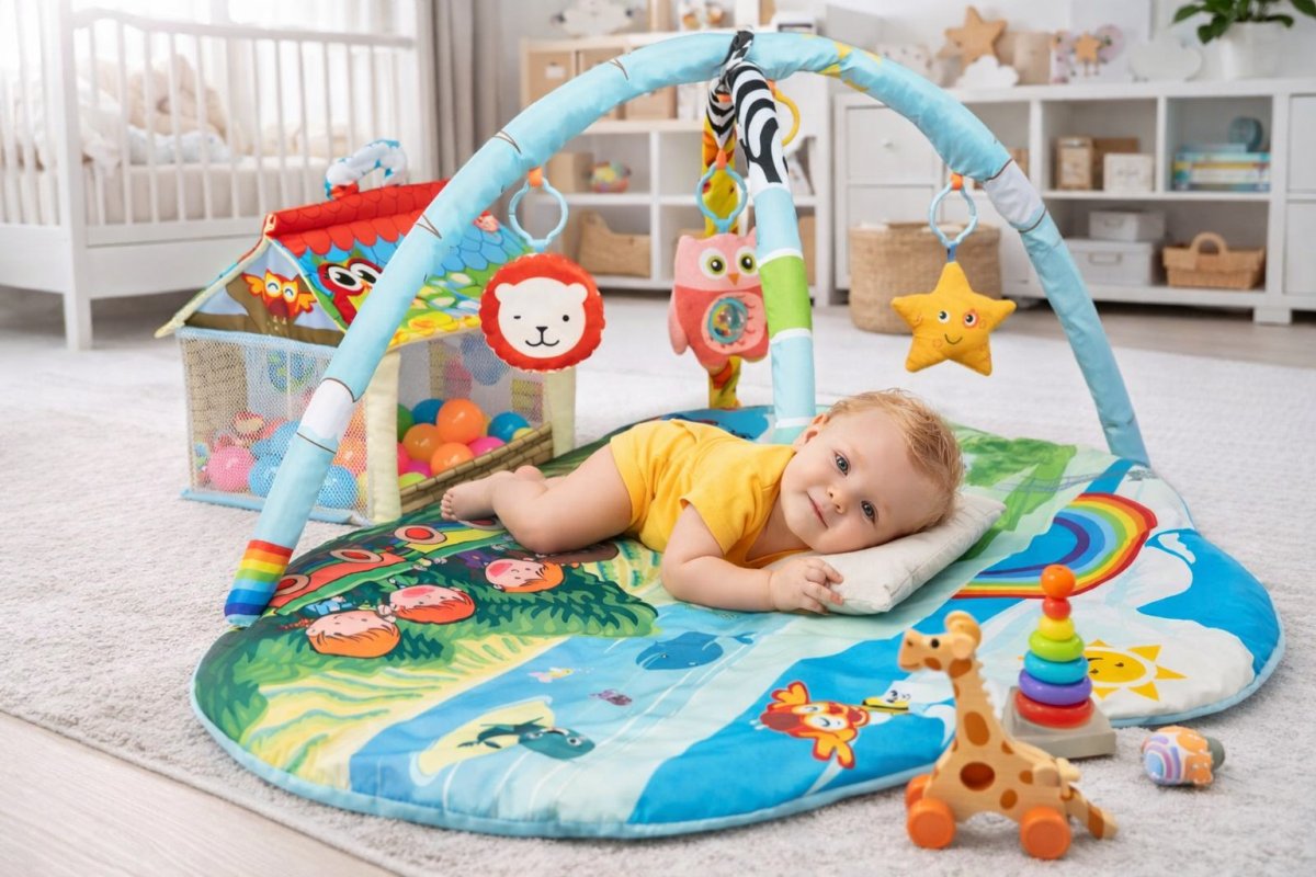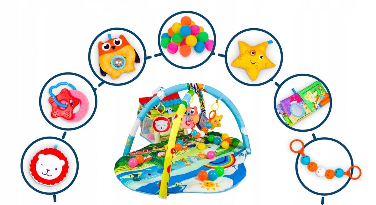 Hracia deka obsahuje sadu hračiek pre rôzne aktivity.